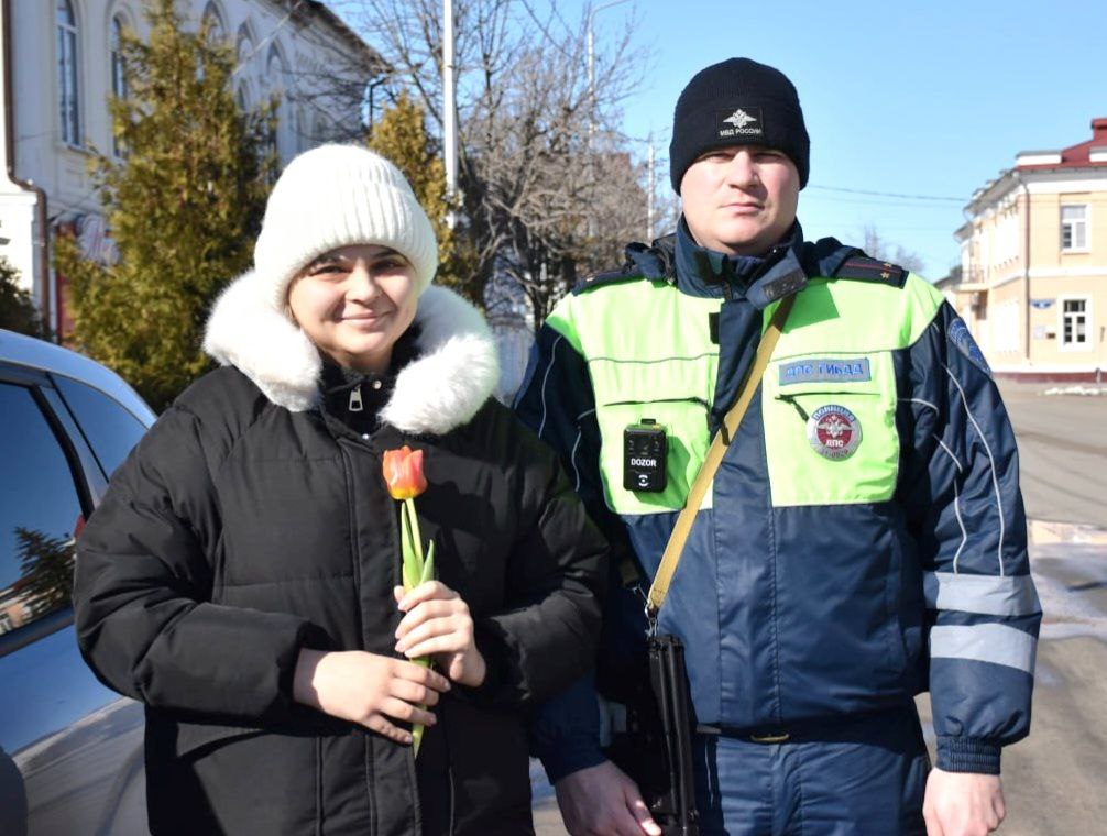 Сегодня сотрудники Госавтоинспекции решили сделать путешествие за рулем особенным для прекрасных автоледи. Каждая женщина-водитель получила яркий цветок прямо на дороге, безусловно, после предъявления улыбки!