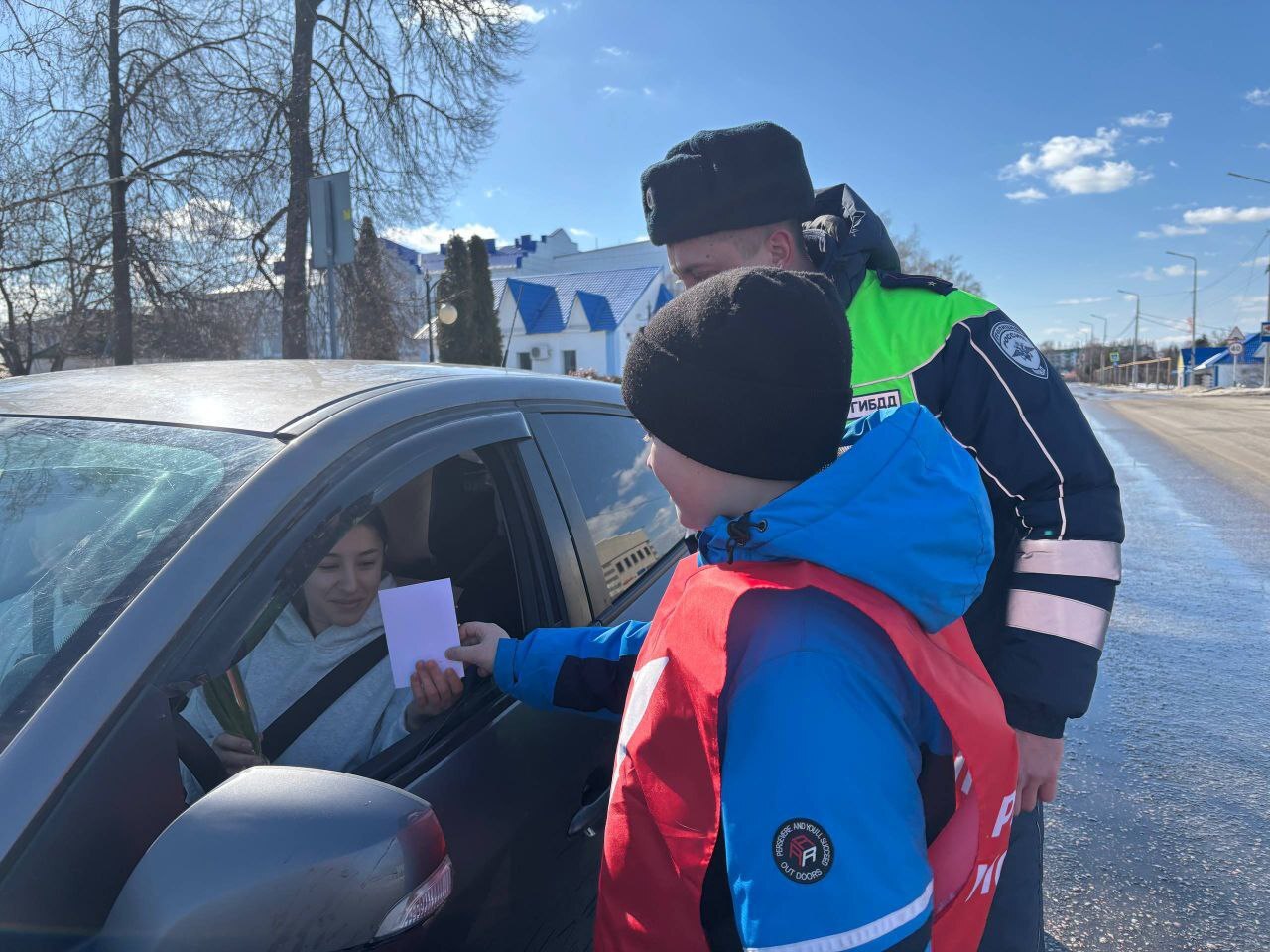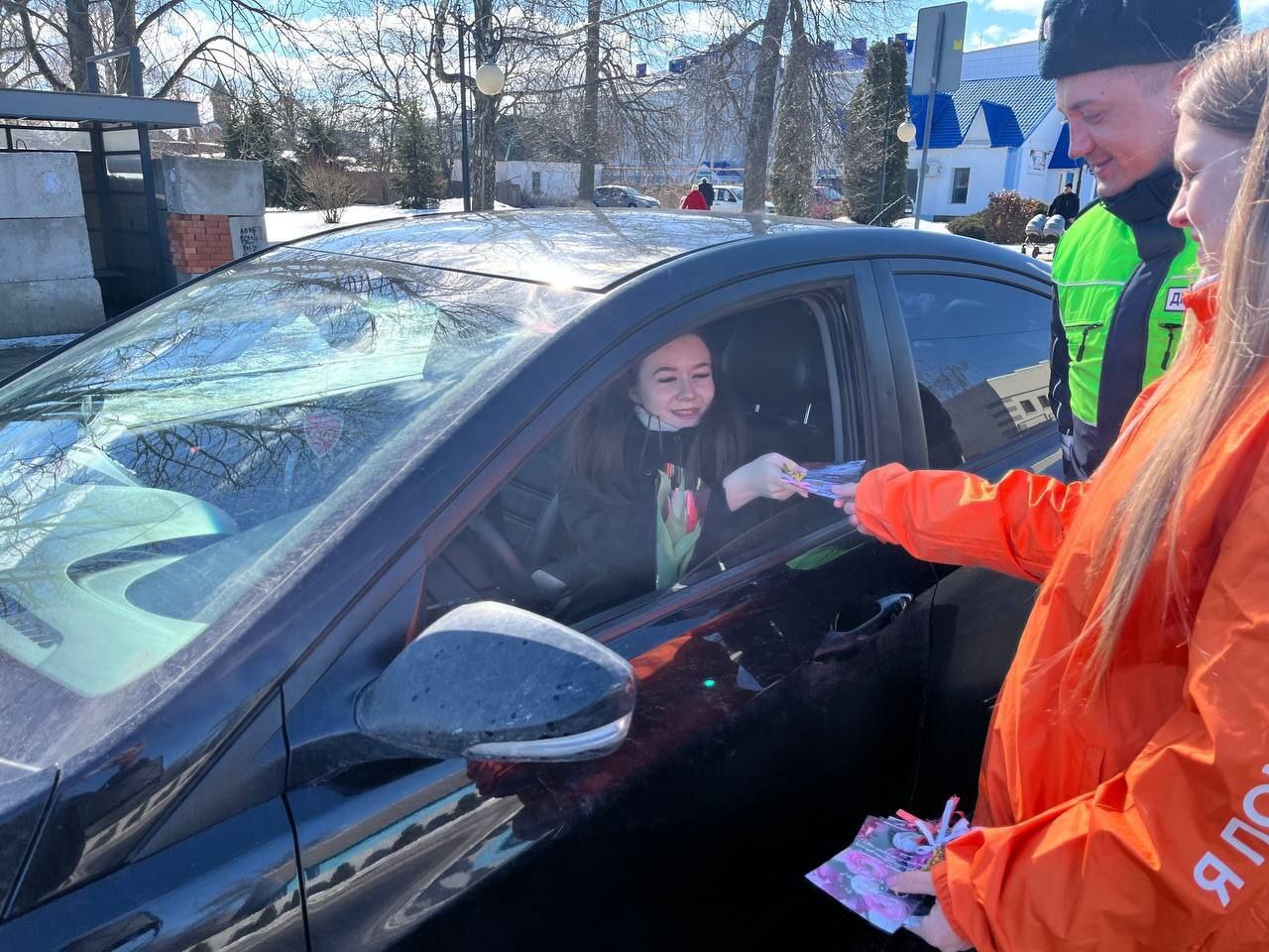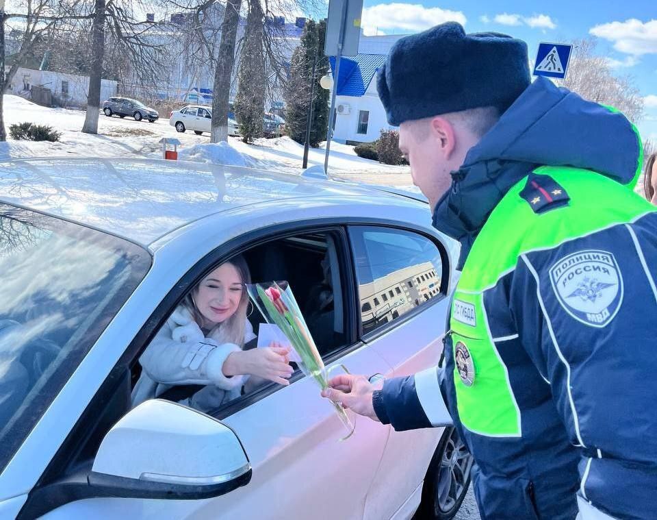 Госавтоинспекторы вместе с волонтёрами и активистами «Движения Первых» по доброй традиции поздравили женщин с Международным женским днём.