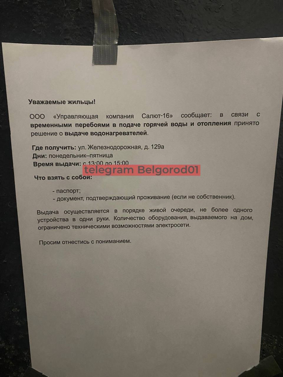 В Белгороде на подъездах МКД появились фейковые объявления о выдаче водонагревателей