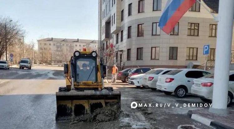 Снег убирают на ул. Мичурина и в районе путепровода на ул. Волчанской. Также коммунальщики очищают системы водоотведения, чтобы не задерживались талые воды.