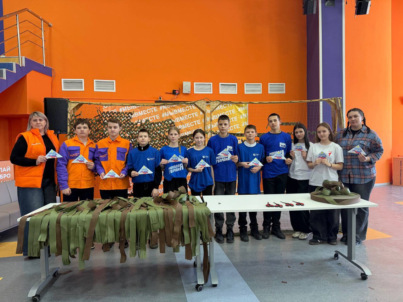 Мастер-класс по плетению маскировочных сетей ребятам провела «Доброволец Белгородчины» Нина Шеховцова. Участники не просто осваивали новую технику — они создавали реальную защиту для наших бойцов.