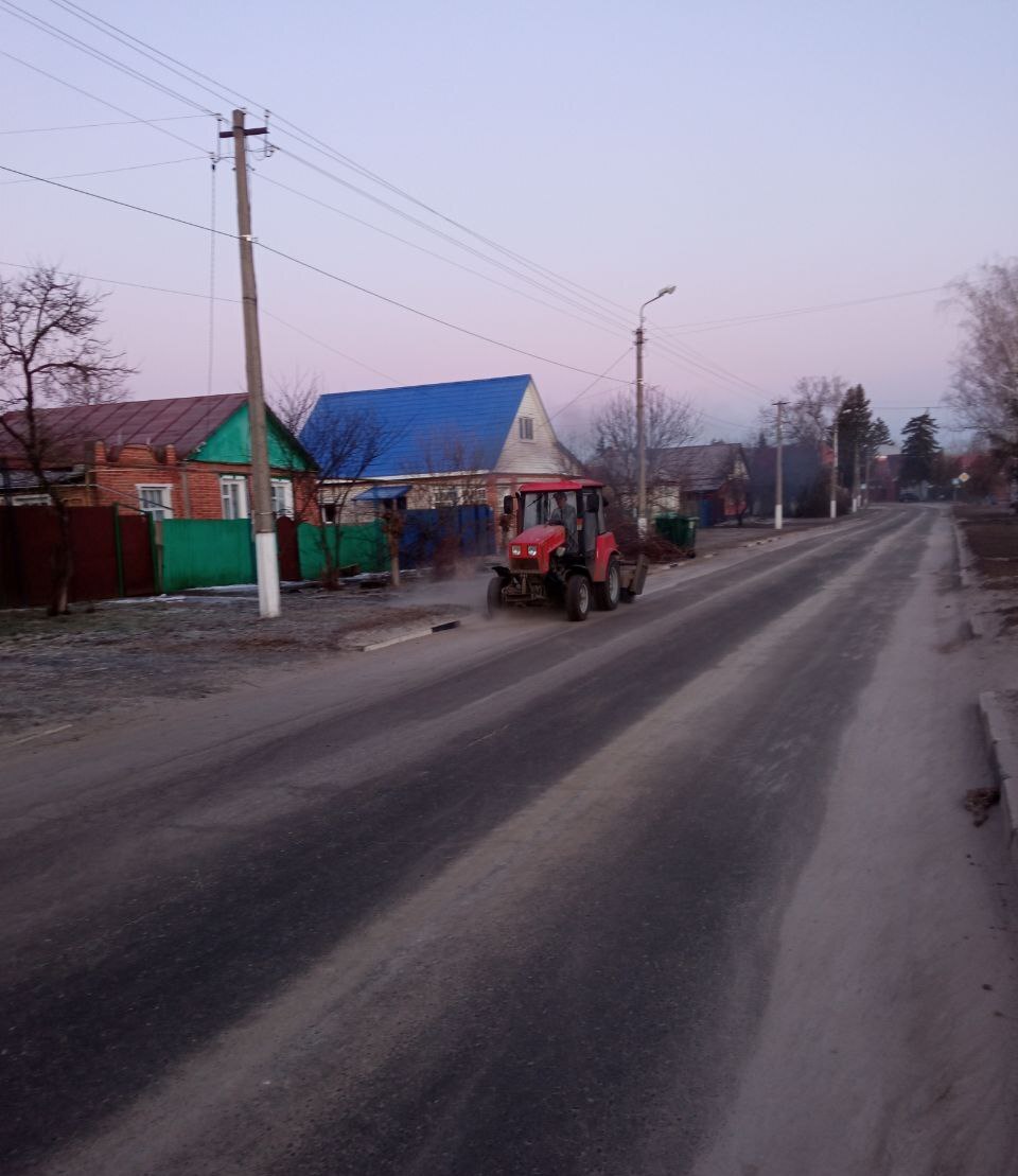 Сотрудники «Центр ЖКУ Грайворонский» очищают проезжую часть, тротуары, площади и остановки от накопившихся за зиму грязи, песка и мусора.