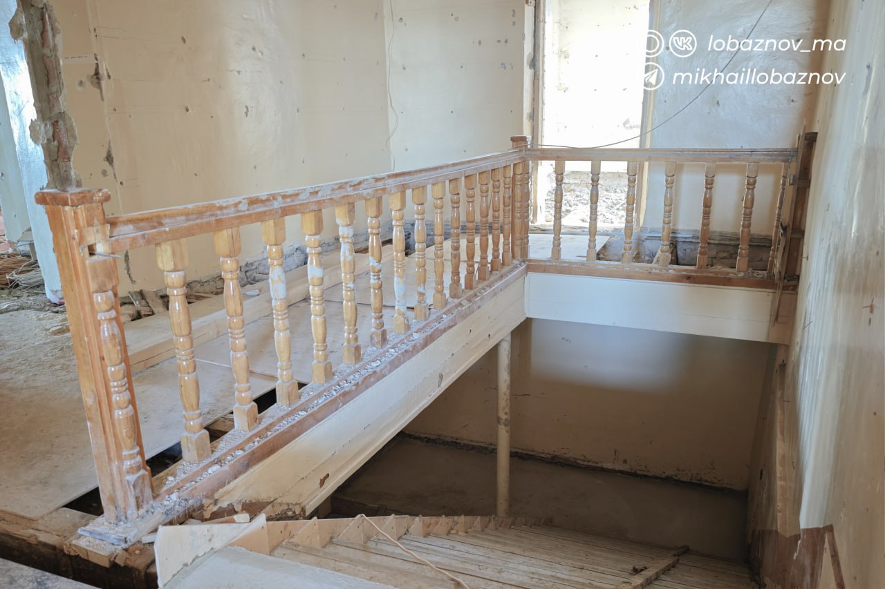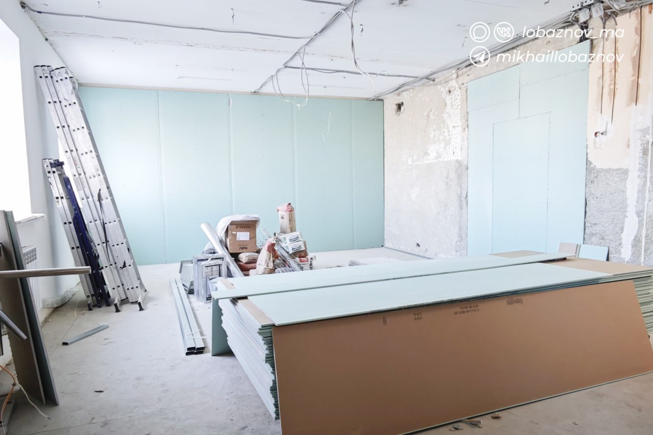 Второй и третий этажи первого корпуса отремонтированы, но работы в здании ещё продолжаются. Осталось закончить холл, столовую и спортивный зал. По графику строители идут с опережением.