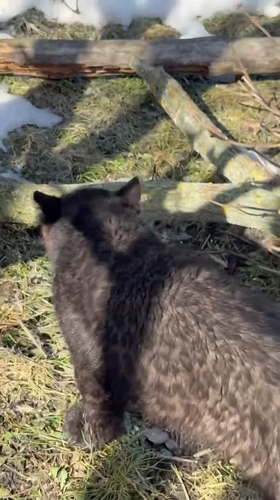 Обустройство вольера почти завершилось. И малышку впервые выпустили на короткую прогулку. Сначала она внимательно изучила окрестности, походила по снегу, поохотилась на птичку, а потом придумала новую забаву – прыгать на всех с разбега.
