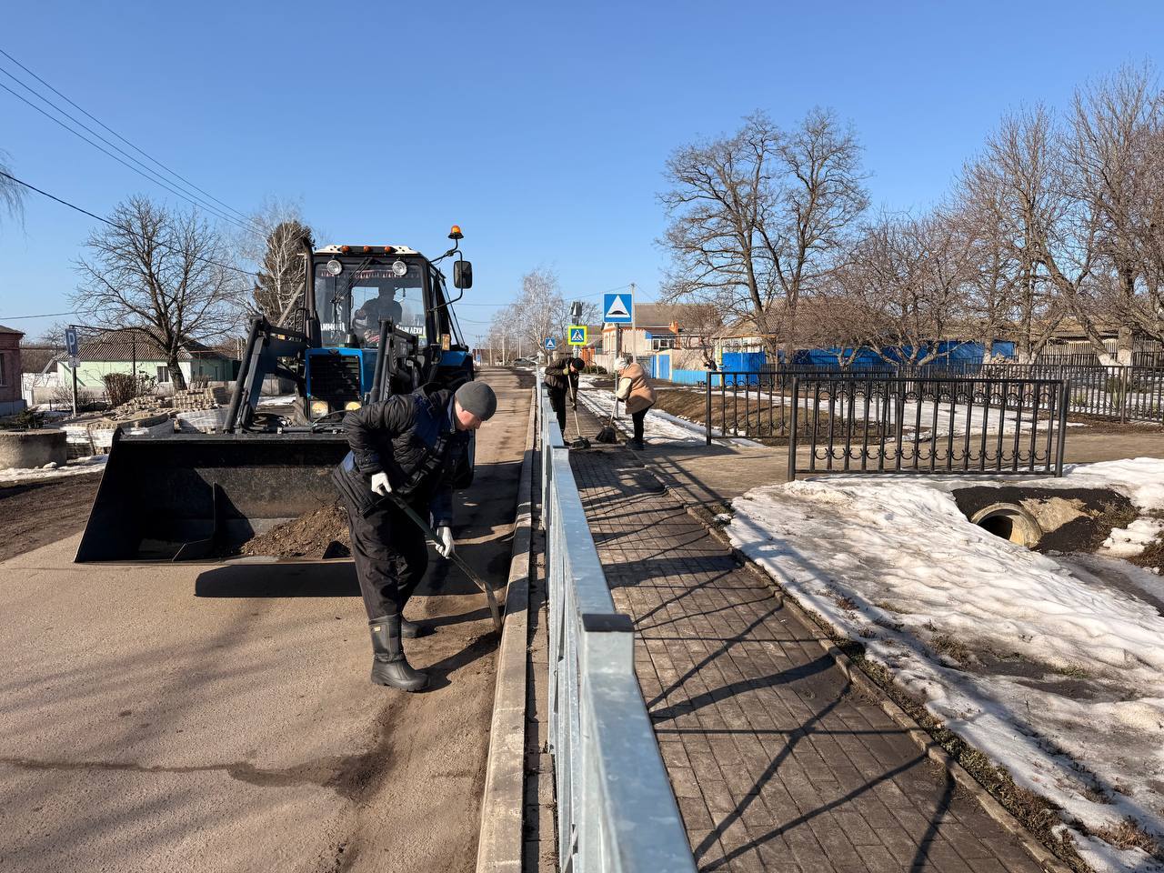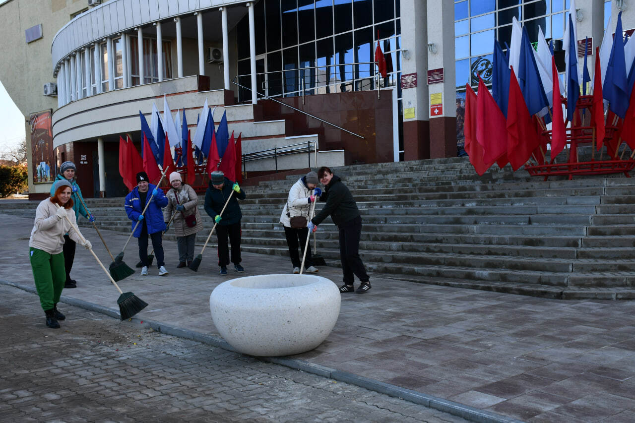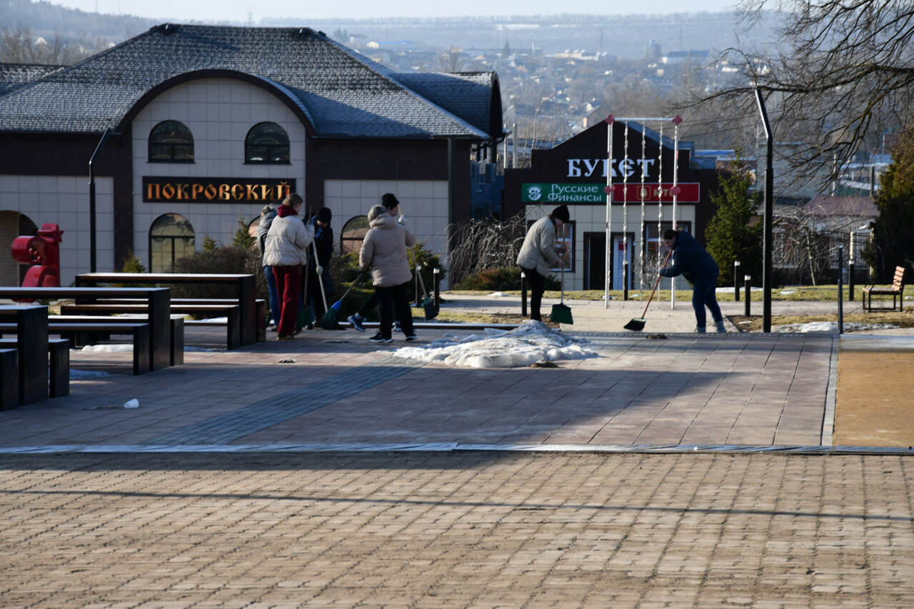 Не остаются без внимания и общественные пространства Красногвардейского округа. Так, сегодня сотрудники администрации муниципалитета привели в порядок после зимнего периода Соборную площадь и прилегающую к ней территорию. Вышли на уборку своих пространств и работники сельских территориальных администраций.