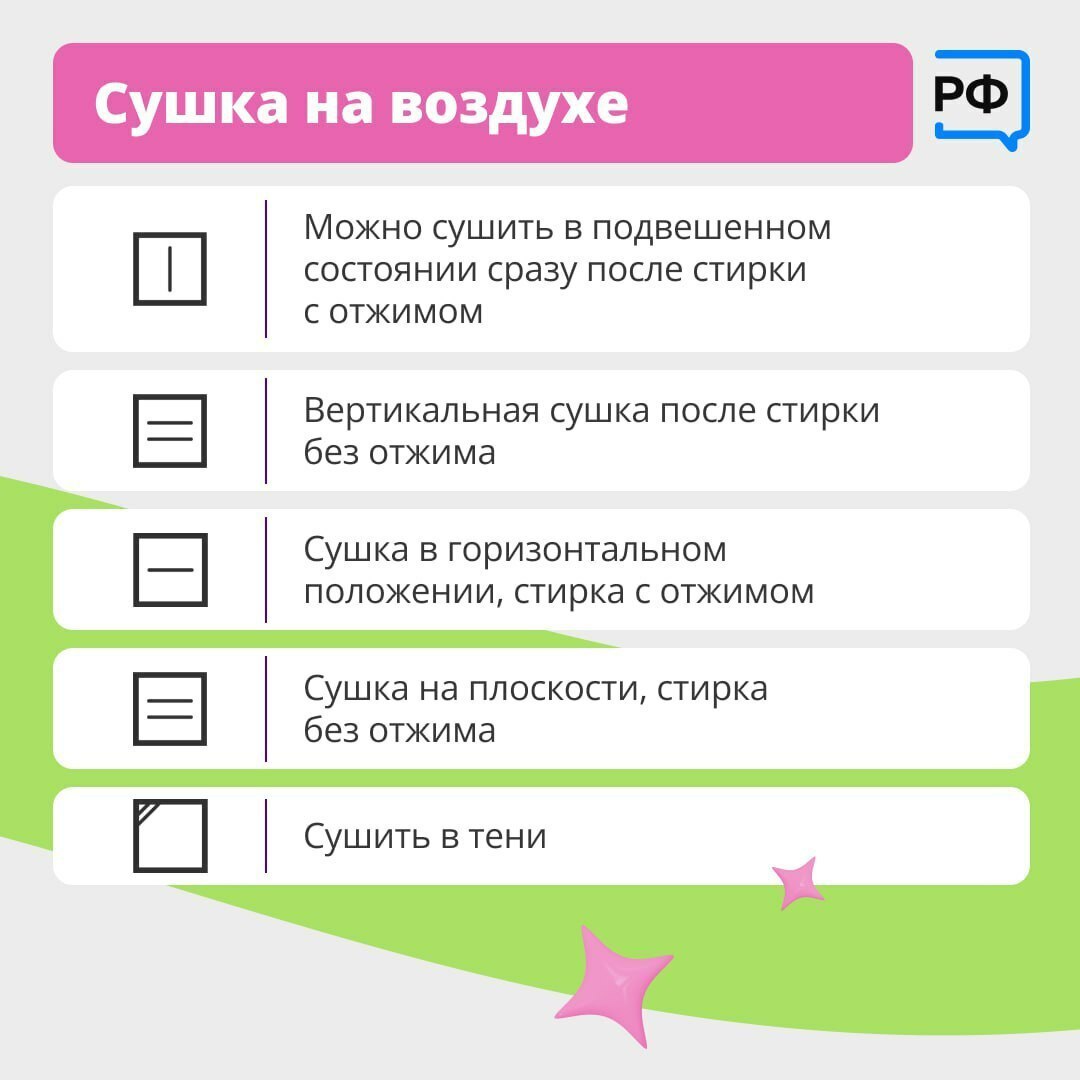 Некоторые вещи можно стирать только вручную и при определённой температуре. Как правильно ухаживать за одеждой, указано на специальном ярлыке. В карточках разбираемся, что значат все кружки, треугольники и квадраты на бирках.