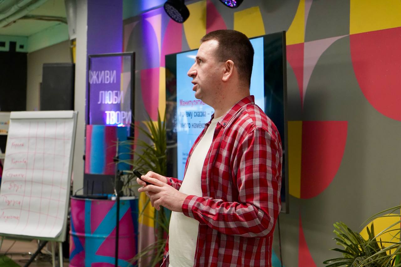 В рамках просветительского проекта «МедиаФабрика» перед молодёжью выступил Олег Шевцов, шеф-редактор печатных СМИ компании «Медиацентр». Вместо скучной лекции спикер представил настоящую сказку о том, как устроены современные медиа.