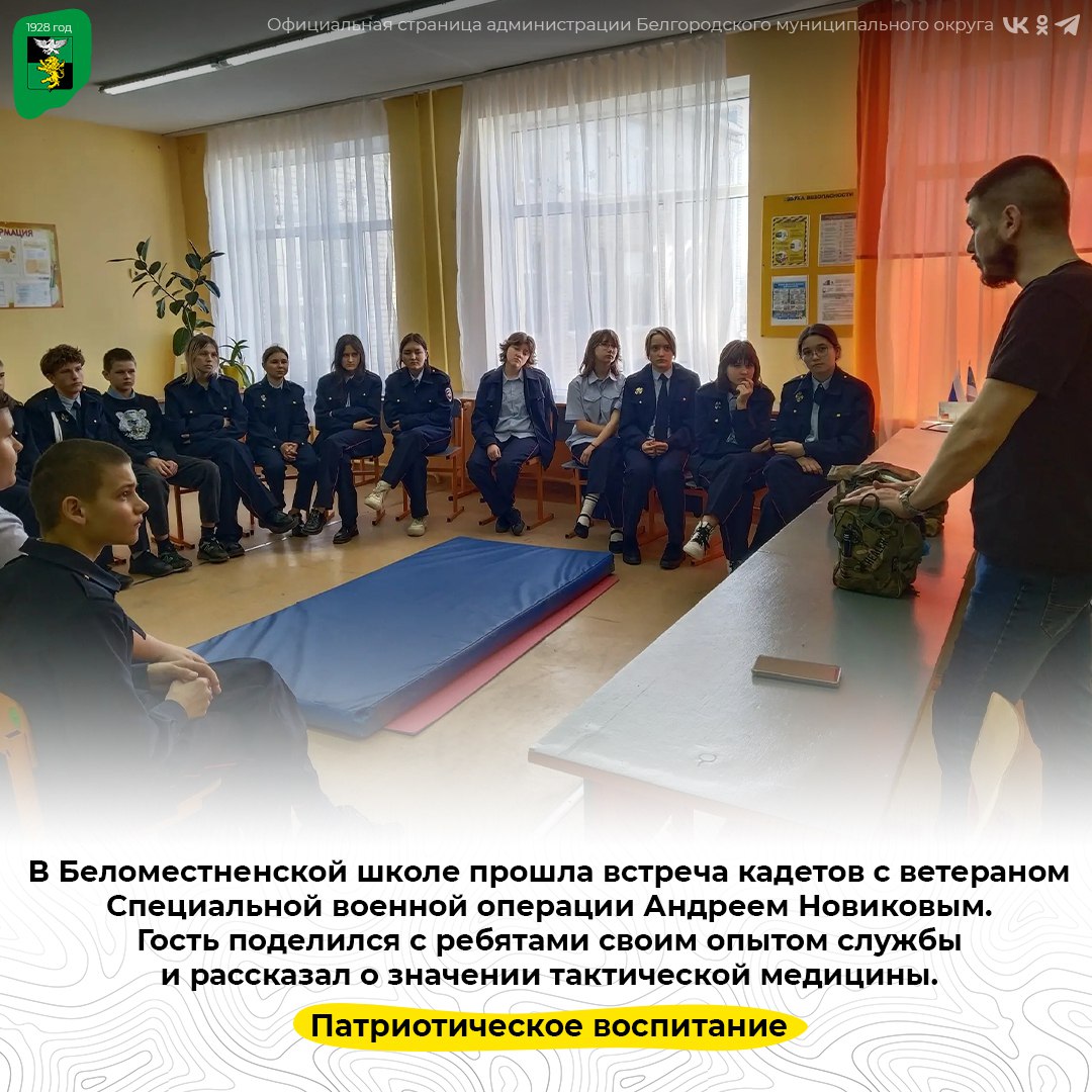 В Беломестненской школе прошла встреча кадетов с ветераном Специальной военной операции Андреем Новиковым