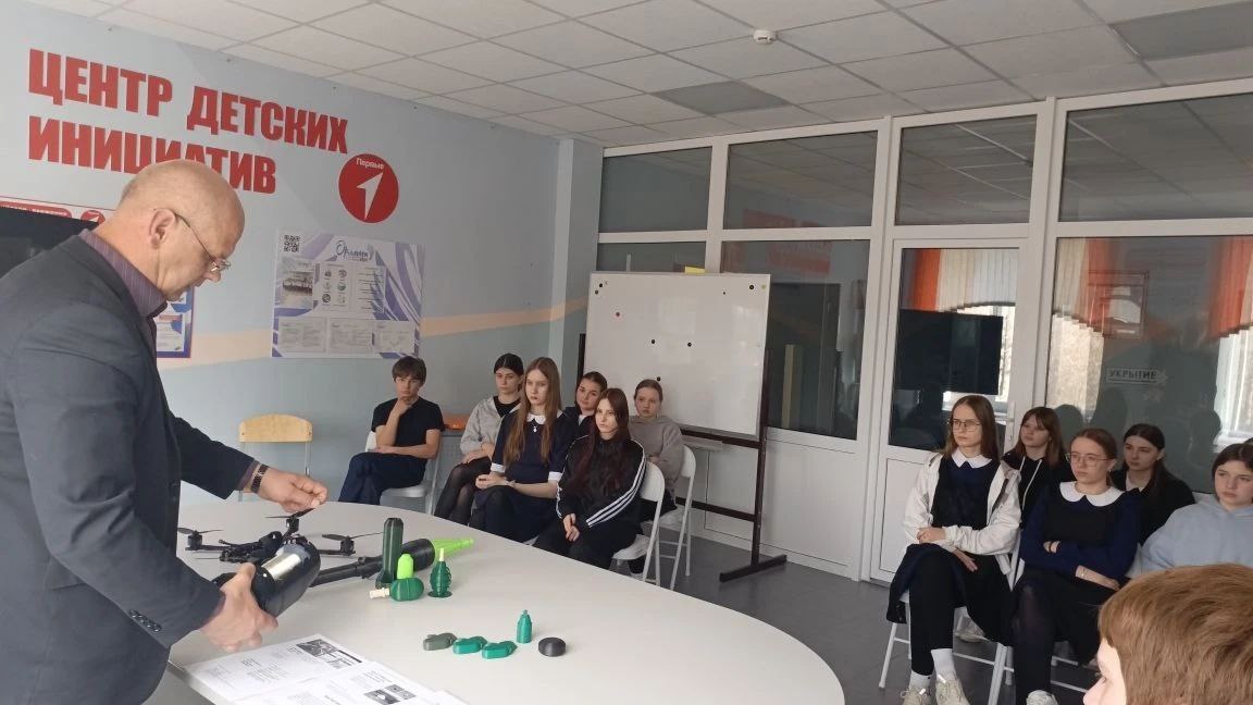 Александр Евгеньевич не только объяснил алгоритм действий при обнаружении дрона в воздухе, но и затронул вопросы минной безопасности. Школьники узнали, как распознать мину и что делать при обнаружении подозрительных предметов. Отдельное внимание на встрече уделили новым видам угроз - принципам работы оптоволокна в контексте БПЛА и так называемым дронам-«ждунам». Знания, полученные на такой лекции, могут спасти жизнь, - уверены организаторы встречи.