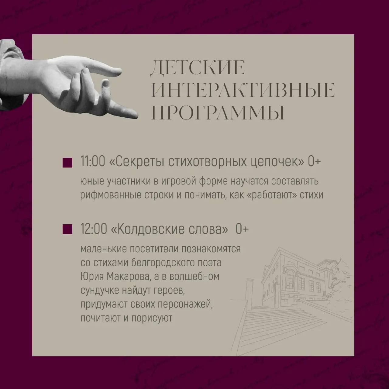 В Международный день поэзии - 21 марта, Белгородский государственный литературный музей представит свою программу «Литературная стихия» в творческих мастерских!
