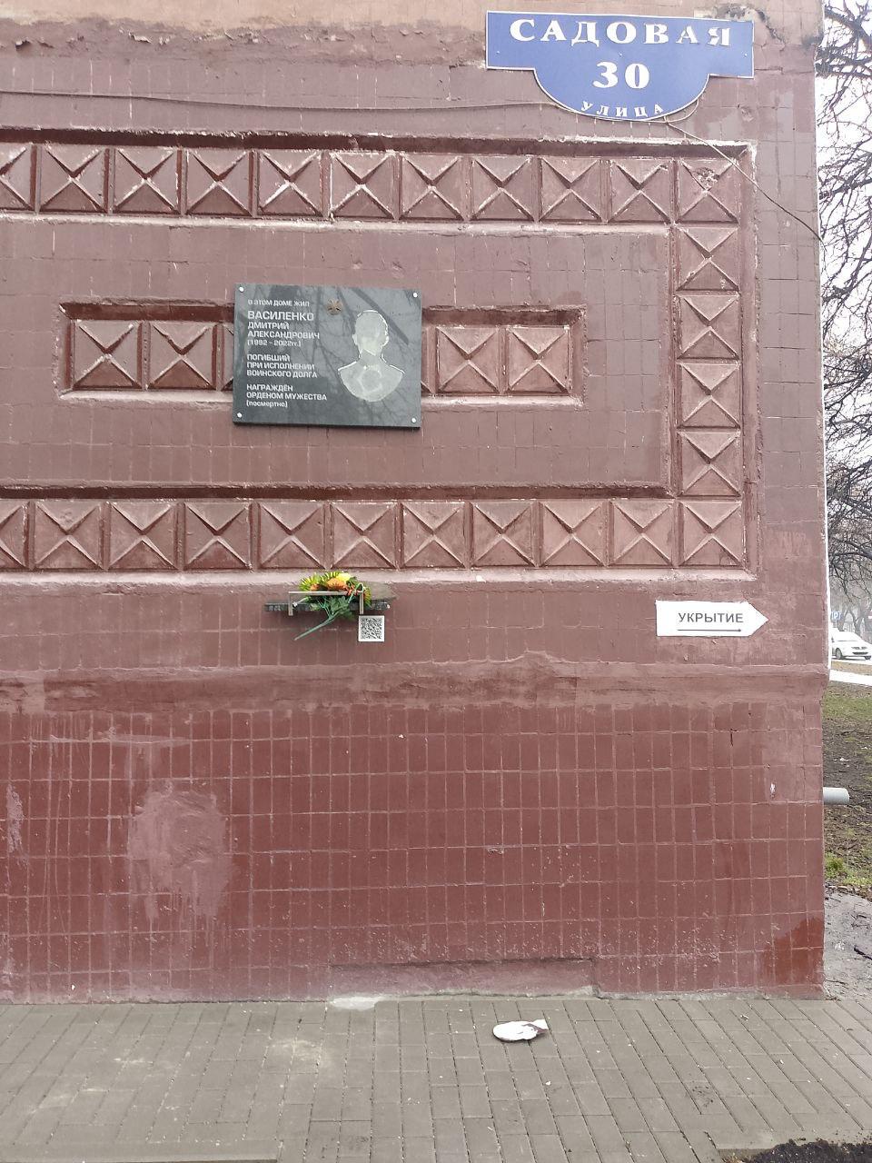 Табличка в память бойца Дмитрия Василенко установлена на доме №30 по Садовой улице, где жил герой.