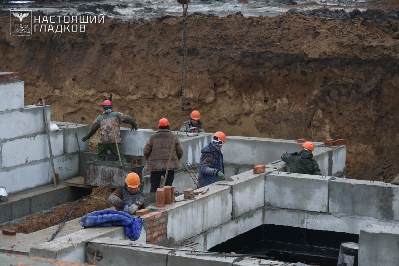 Сейчас на объекте монтируют цокольный этаж и плиты перекрытия.