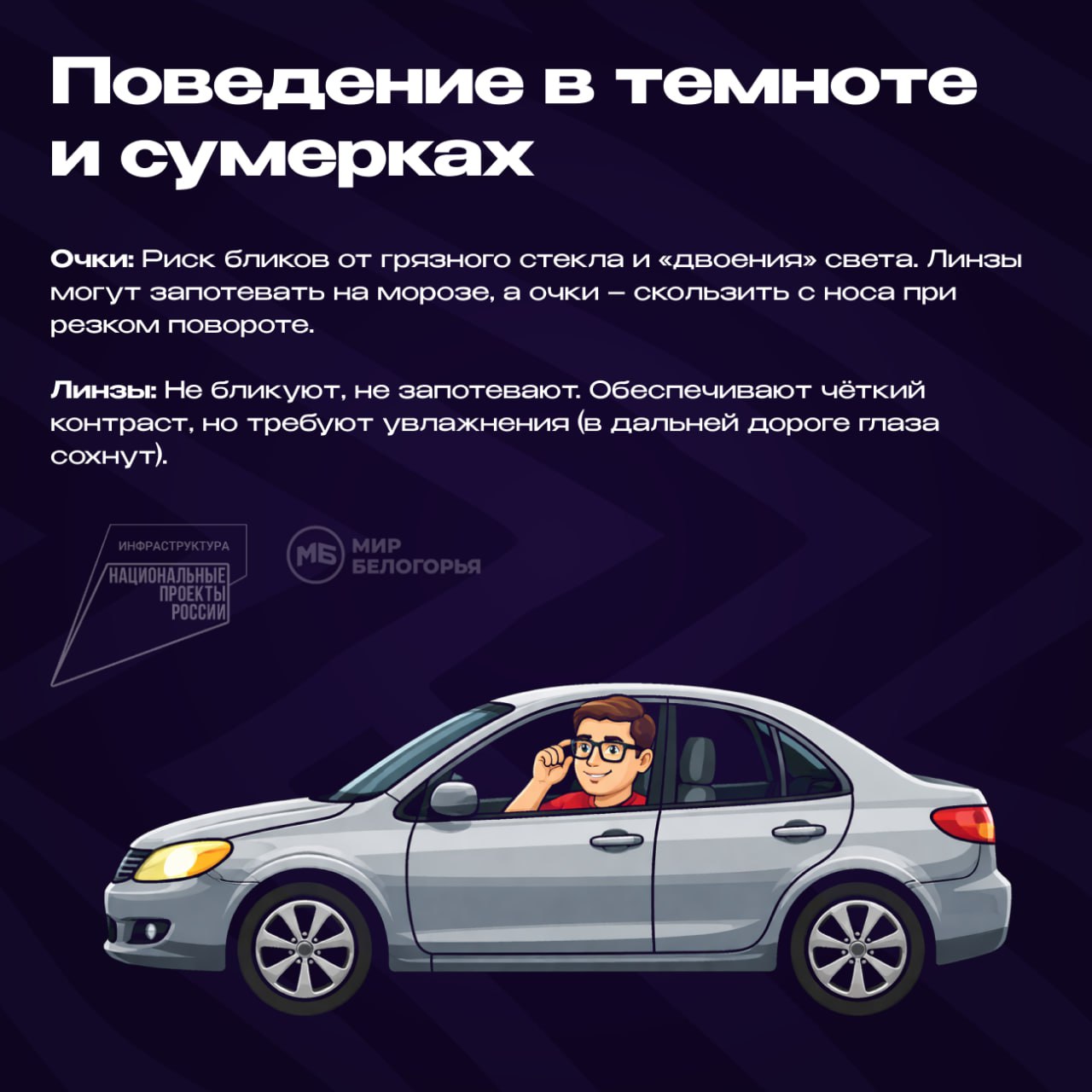 Очки или линзы: что безопаснее для водителя в дальней поездке?