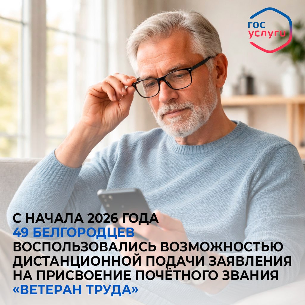 С начала 2026 года 49 белгородцев воспользовались возможностью дистанционной подачи заявления на присвоение почётного звания «Ветеран труда»