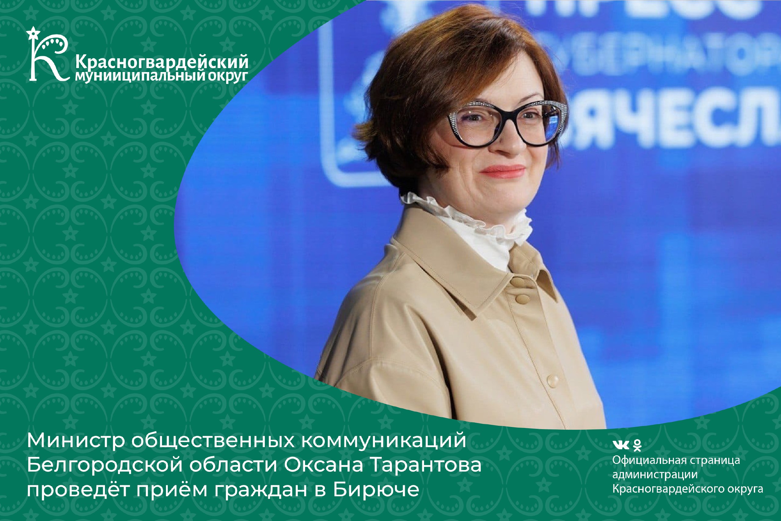 Министр общественных коммуникаций области Оксана Тарантова проведёт приём граждан в Бирюче