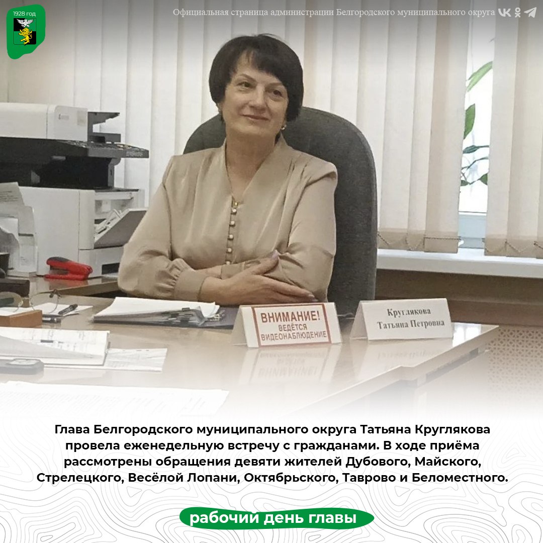 Глава Белгородского муниципального округа Татьяна Круглякова провела еженедельную встречу с гражданами