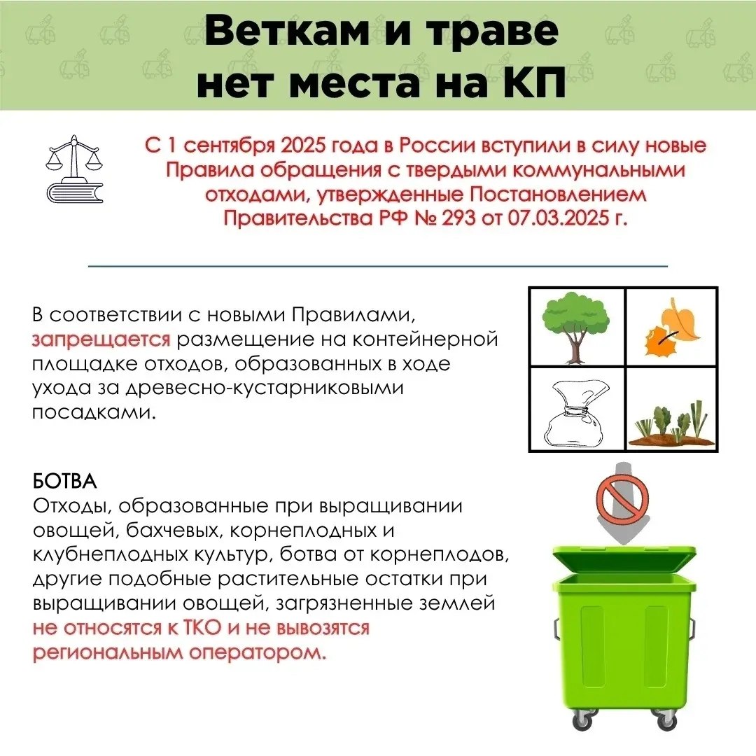Ветки, листва, спиленные деревья и кустарники — не относятся к обычному мусору. Их нельзя складывать в контейнеры для ТКО!