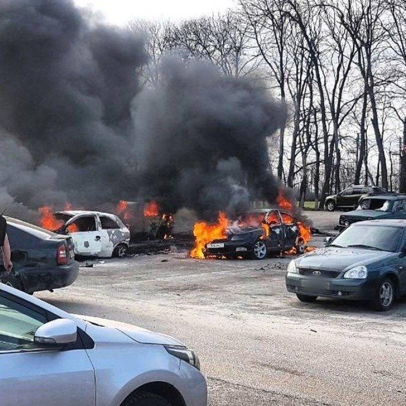 В посёлке Маслова Пристань от ударов двух дронов на парковке сельхозпредприятия загорелись три автомобиля, ещё 16 — повреждены.