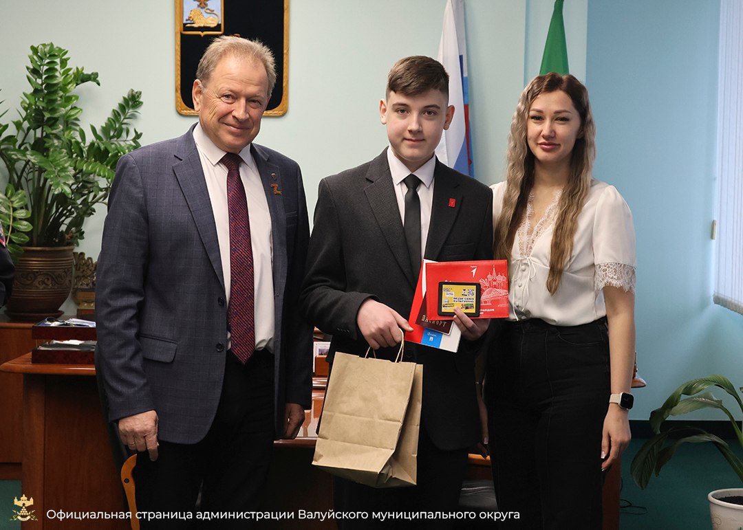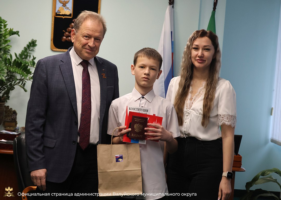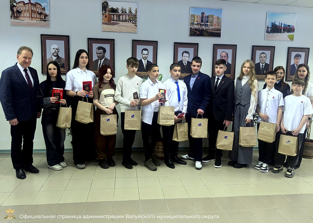 Глава администрации Валуйского муниципального округа Алексей Дыбов вручил первые паспорта юным валуйчанам