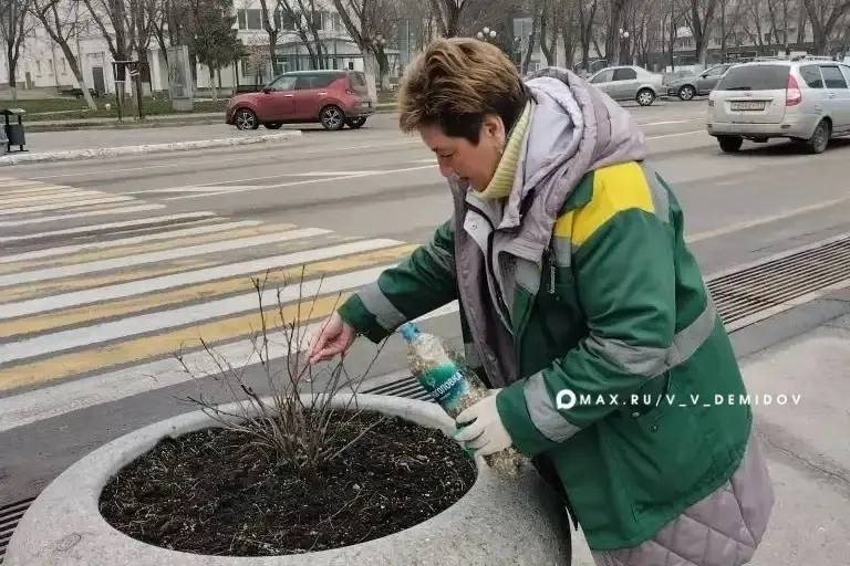 Озеленители приводят в порядок клумбы (уход за растениями, подкормка многолетников, чистка газонов)