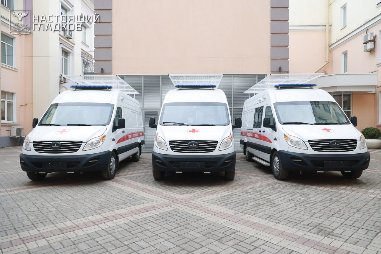 Сегодня передал три бронированные машины скорой помощи.