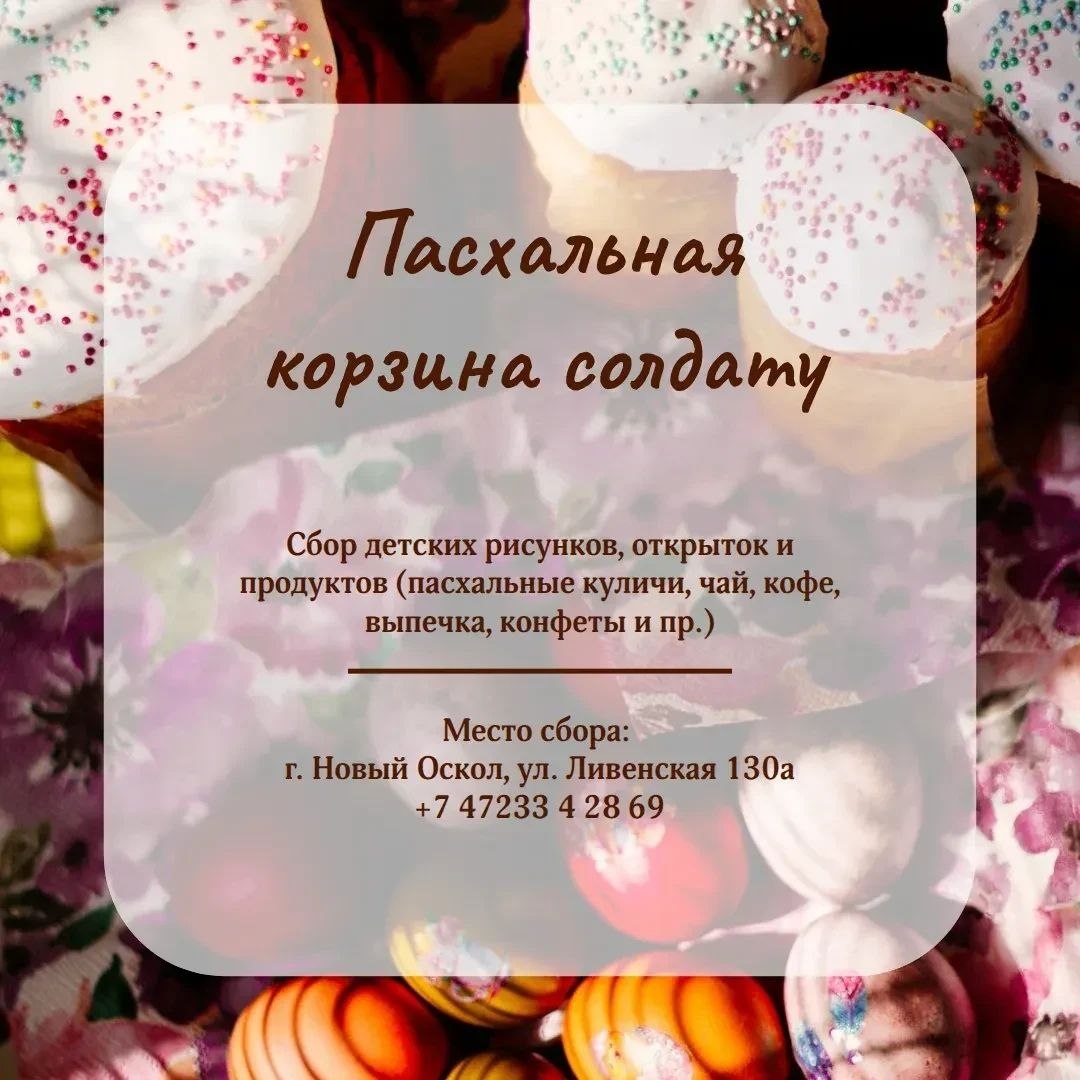 В Новооскольском округе вновь стартует наша любимая традиционная акция «Пасхальная корзина солдату». Мы приглашаем каждого из вас стать частью этого большого и доброго дела!