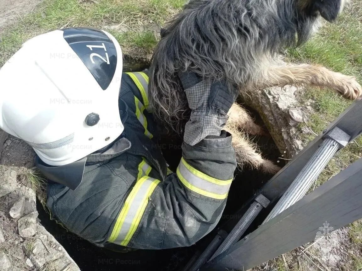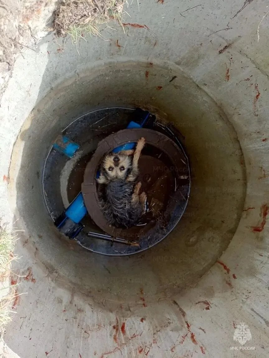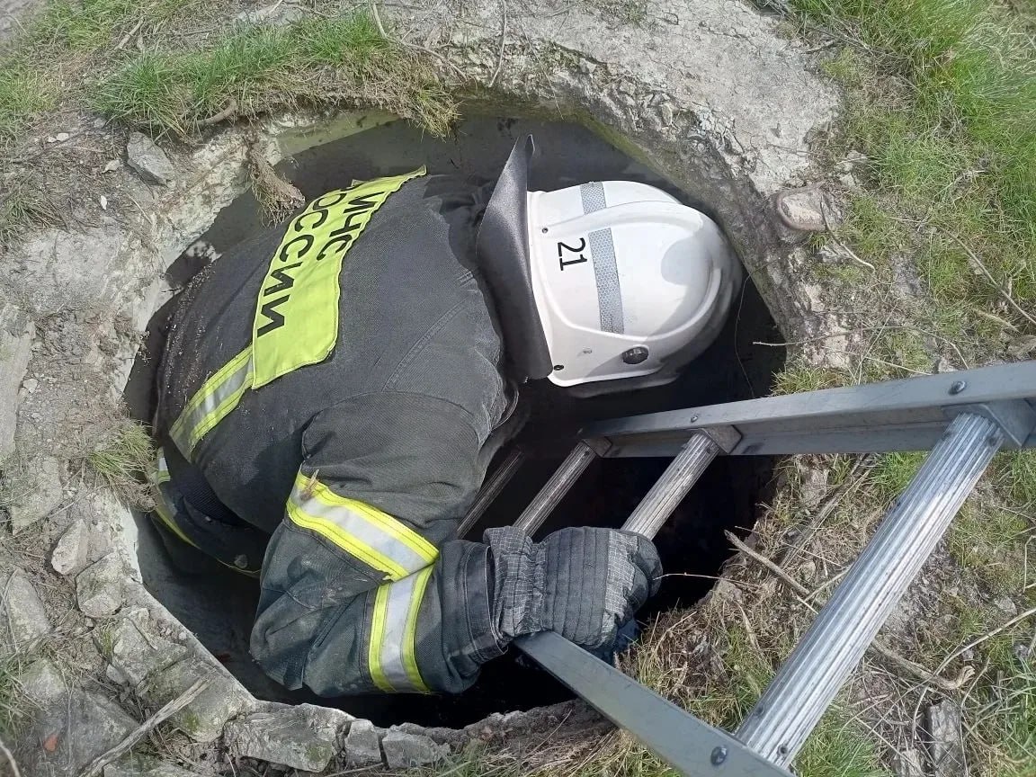 За помощью в МЧС обратились местные жители. Они рассказали, что животное провалилось в яму глубиной более 2,5 м и было обессилено.