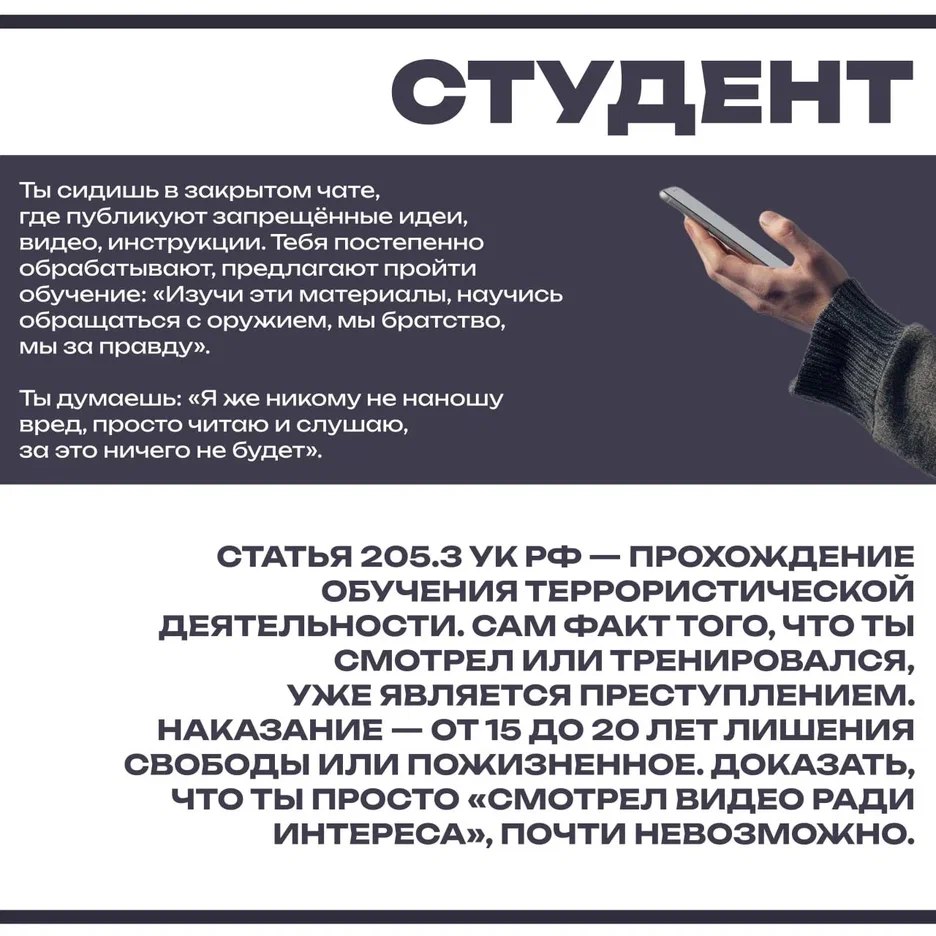 Главная опасность вербовки заключается в том,что ребёнку очень сложно распознать, что его вербуют. Основные маркеры вербовки и её последствия — в карточках.