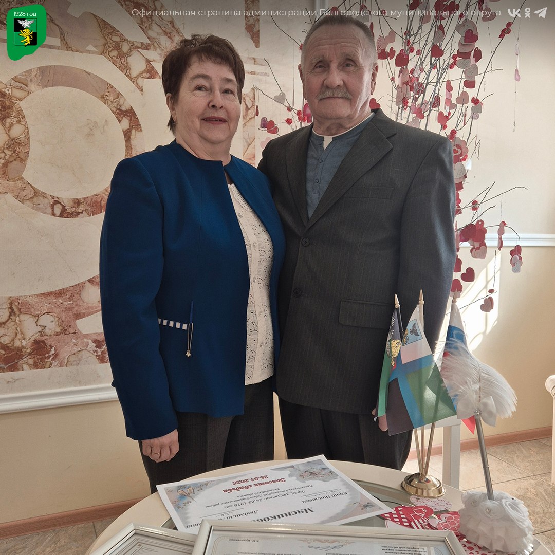В дворце бракосочетания Белгородского муниципального округа состоялось торжественное чествование Юрия Павловича и Людмилы Алексеевны, отметивших 50-летие совместной жизни.