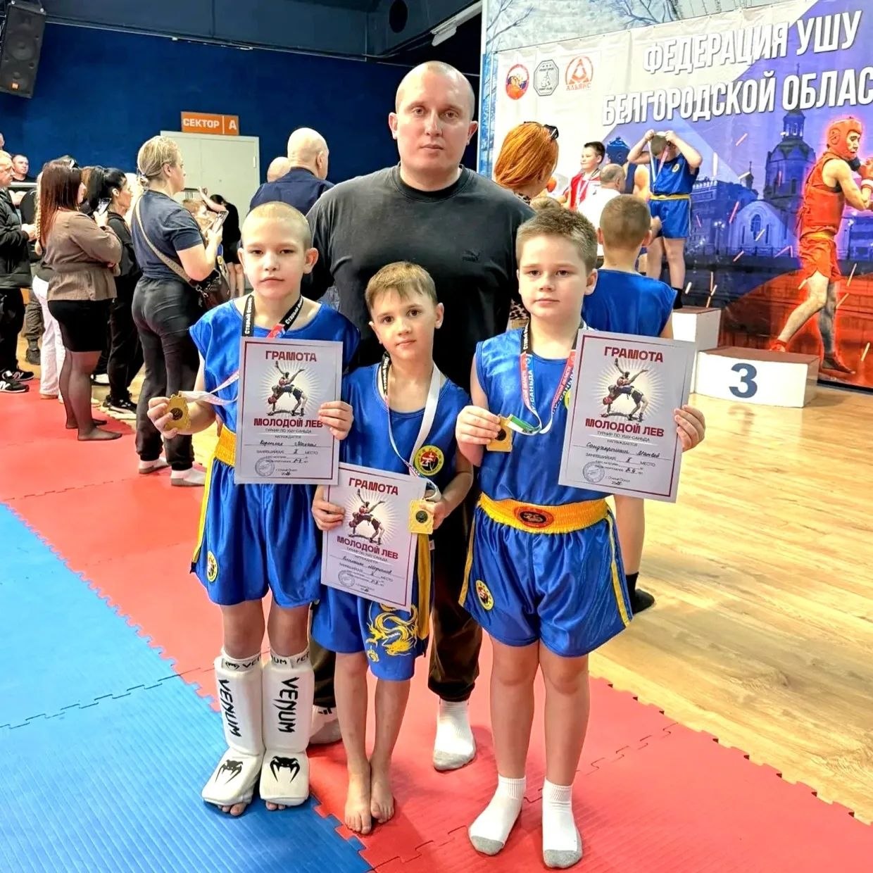 Воспитанники клуба рукопашного боя «Воин» под руководством тренера Виталия Полянского приняли участие в межрегиональном турнире по ушу-саньда «Молодой лев» в г. Старый Оскол.