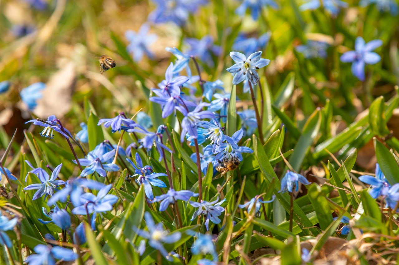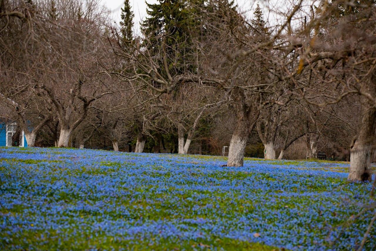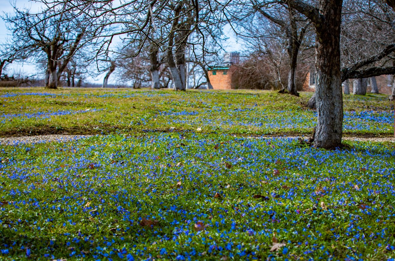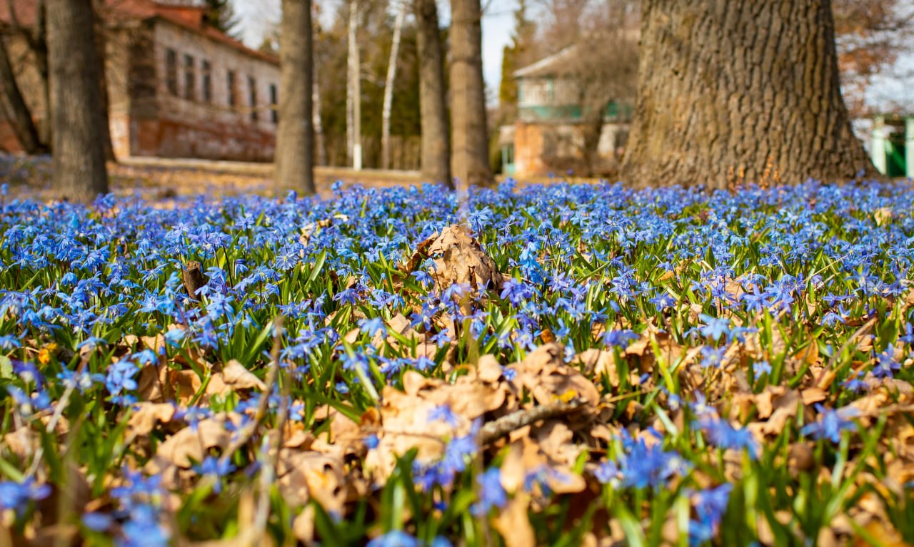 Голубые поля из пролески в заповеднике «Белогорье».