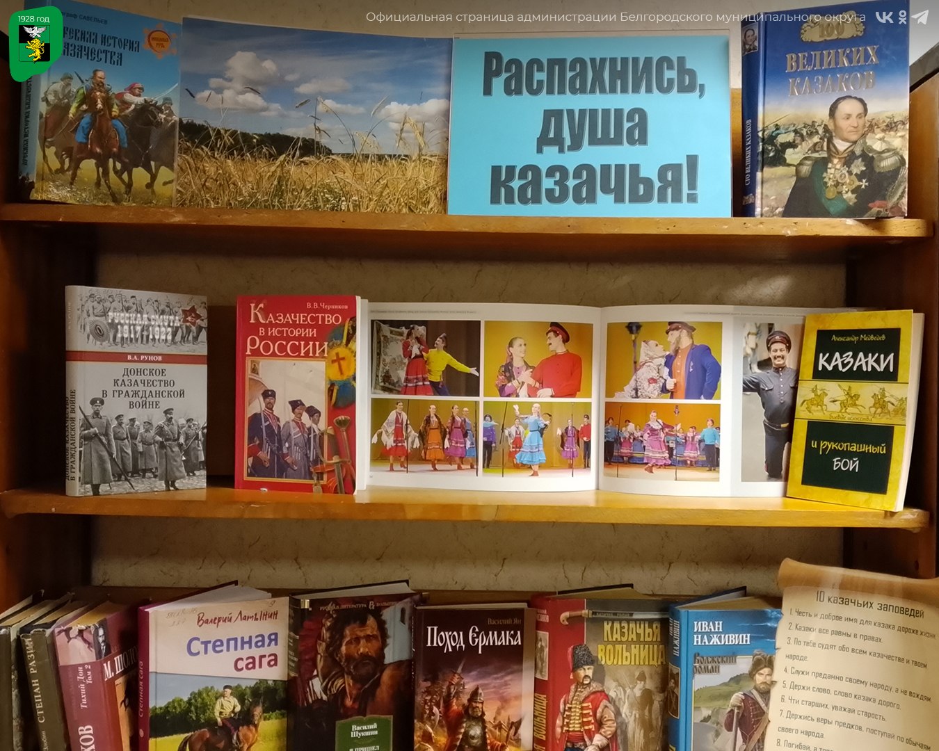 Сотрудники библиотеки подготовили книжную выставку «Распахнись, душа казачья». Гостями встречи стали специалист по молодёжной политике Екатерина Клименко и советник директора по воспитанию Светлана Болховитина.
