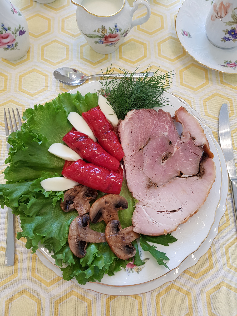 Готовую поркетту нарезать и сервировать с гарниром, добавив свежие листья салата и зелень для свежести и аромата. Приятного аппетита!