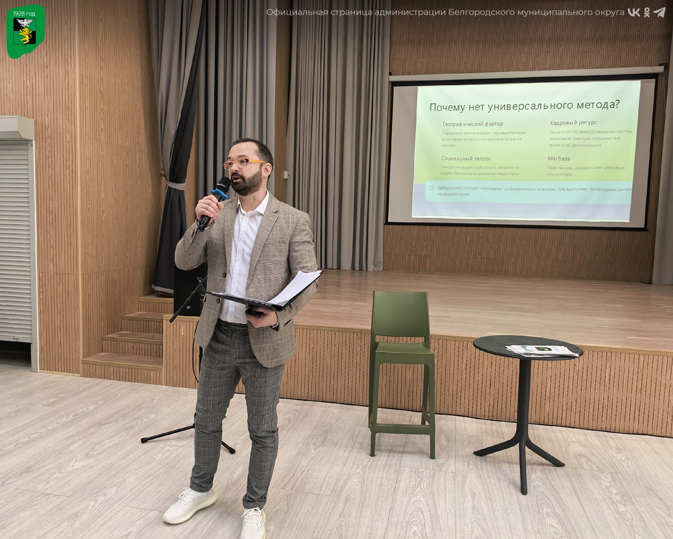 Открыла мероприятие директор школы Ольга Чернобок, представившая подход к формированию программы развития образовательной организации как практического инструмента для педагогов. Заместитель директора Виталий Матюхин обсудил с участниками современные подходы к профориентации и провёл экскурсию по профориентационным стендам.