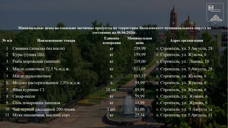 Представляю вашему вниманию актуальную информацию о местах продажи наиболее доступных продуктов питания, входящих в потребительскую корзину, на территории Яковлевского муниципального округа по состоянию на 6 апреля 2026 года.