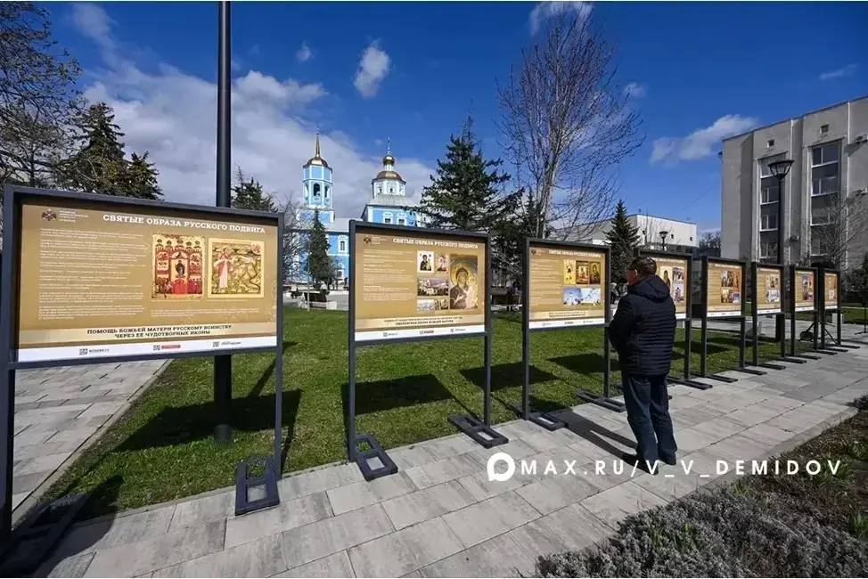 Вчера, в светлый праздник Благовещения, у собора иконы Божией Матери Смоленская открылась символичная выставка «Святые образа русского подвига»