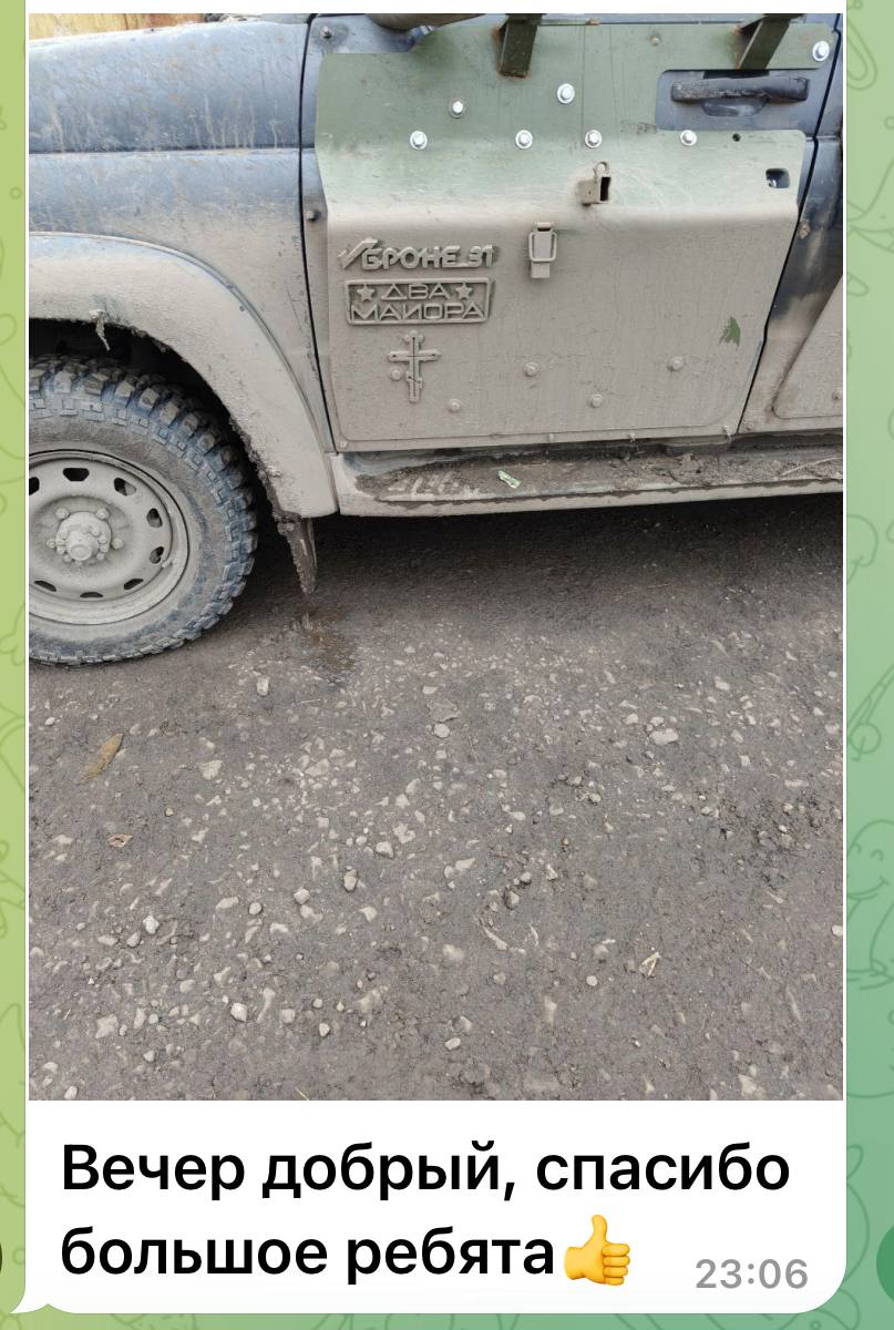 Как же решено было обеспечить безопасность? Запретить и не пущать. Чтобы бойцы с фронта не приезжали на установку бронекомплектов (или забрать их для самостоятельной установки на фронте) выставили кочующие посты Военной полиции. То есть не тупо у ворот, но до 8 раз в день приезжают, смотрят, нет ли военных машин или бойцов, опрашивают местных жителей, не видели ли здесь солдат ВС России, переодетых в гражданку, которые посмели прибыть за бронёй. Хорошо, что все другие задачи Военная полиция выполнила и может уделять нашим волонтерам такое внимание.