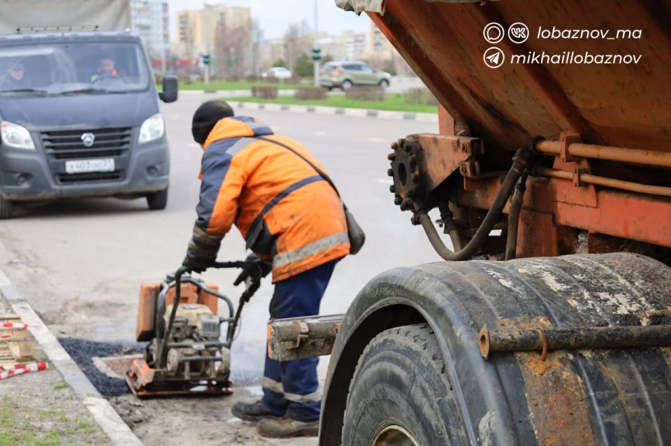 Перед обновлением дорожной разметки сначала приводим дороги в порядок: продолжается ямочный ремонт, уборка песка и мусора.