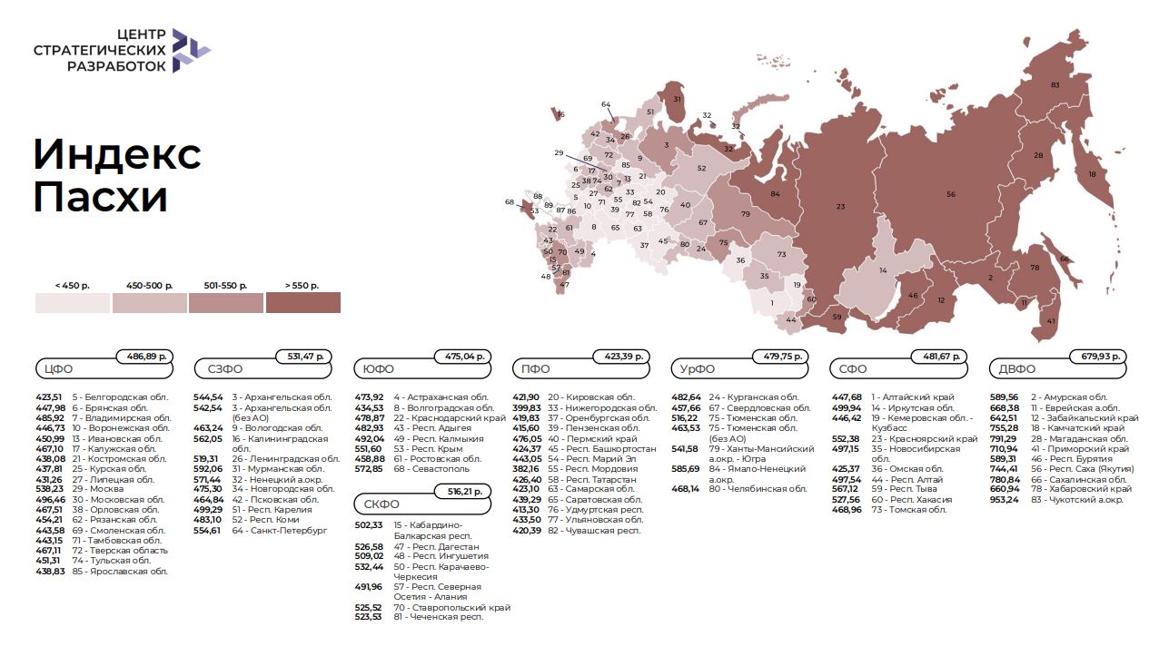 Самый бюджетный набор получился в Республике Мордовии – 382 рубля. А самый дорогой – в Чукотском автономном округе – 953 рубля.