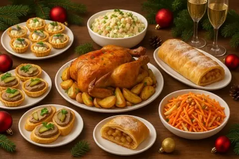 Скоро наступит Новый год, и каждый хочет встретить этот волшебный праздник с размахом, не разорив при этом свой бюджет. Представляем вам идеальное новогоднее меню, которое обойдется всего в 2000 рублей. Оно состоит из двух закусок, двух салатов, горячего блюда и десерта, и подойдет как для дружеской встречи, так и для семейного ужина.