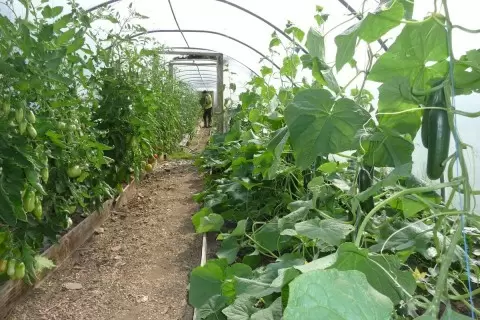 - Томаты следует высаживать на отдельной грядке, учитывая, что более низкие сорта требуют большего солнечного света. В жаркие дни пленку рядом с томатами лучше поднимать для проветривания.