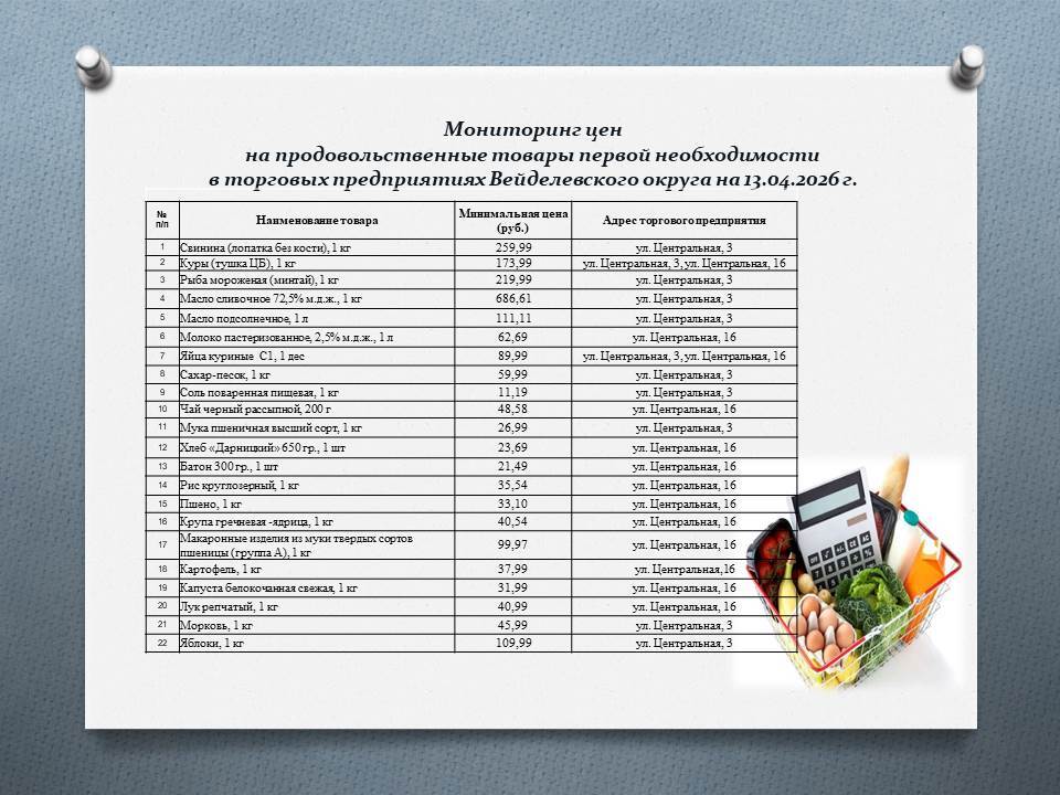 Предлагаю вашему вниманию свежий обзор (информационные материалы) минимальных цен на продукты первой необходимости.