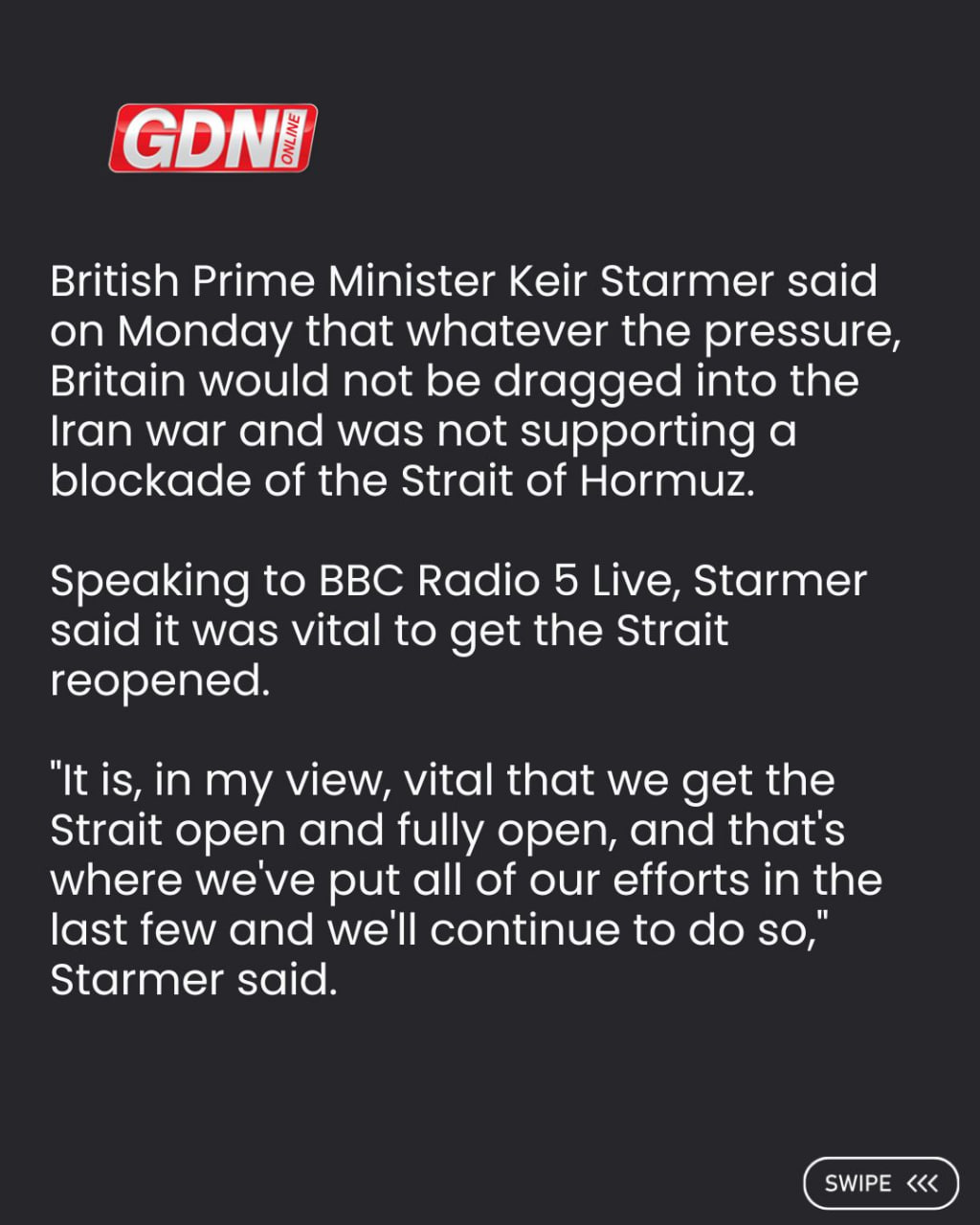 Британия, несмотря на какое бы то ни было давление, не будет участвовать в блокаде против Ирана, заявил премьер-министр Стармер в эфире радио BBC Radio 5 Live.