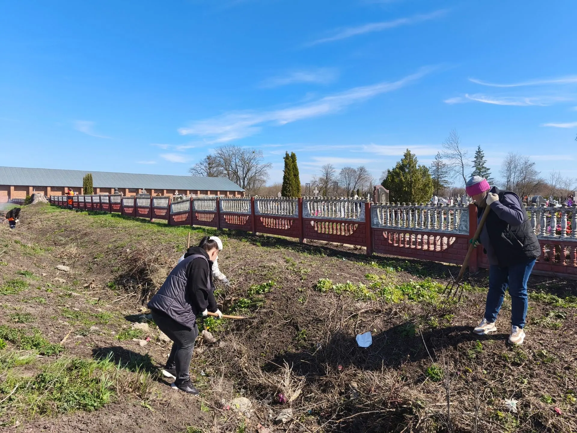 В Чураево очистили и покрасили бордюры в центре села, провели уборку на восьми кладбищах и вывезли на свалку семь телег мусора.