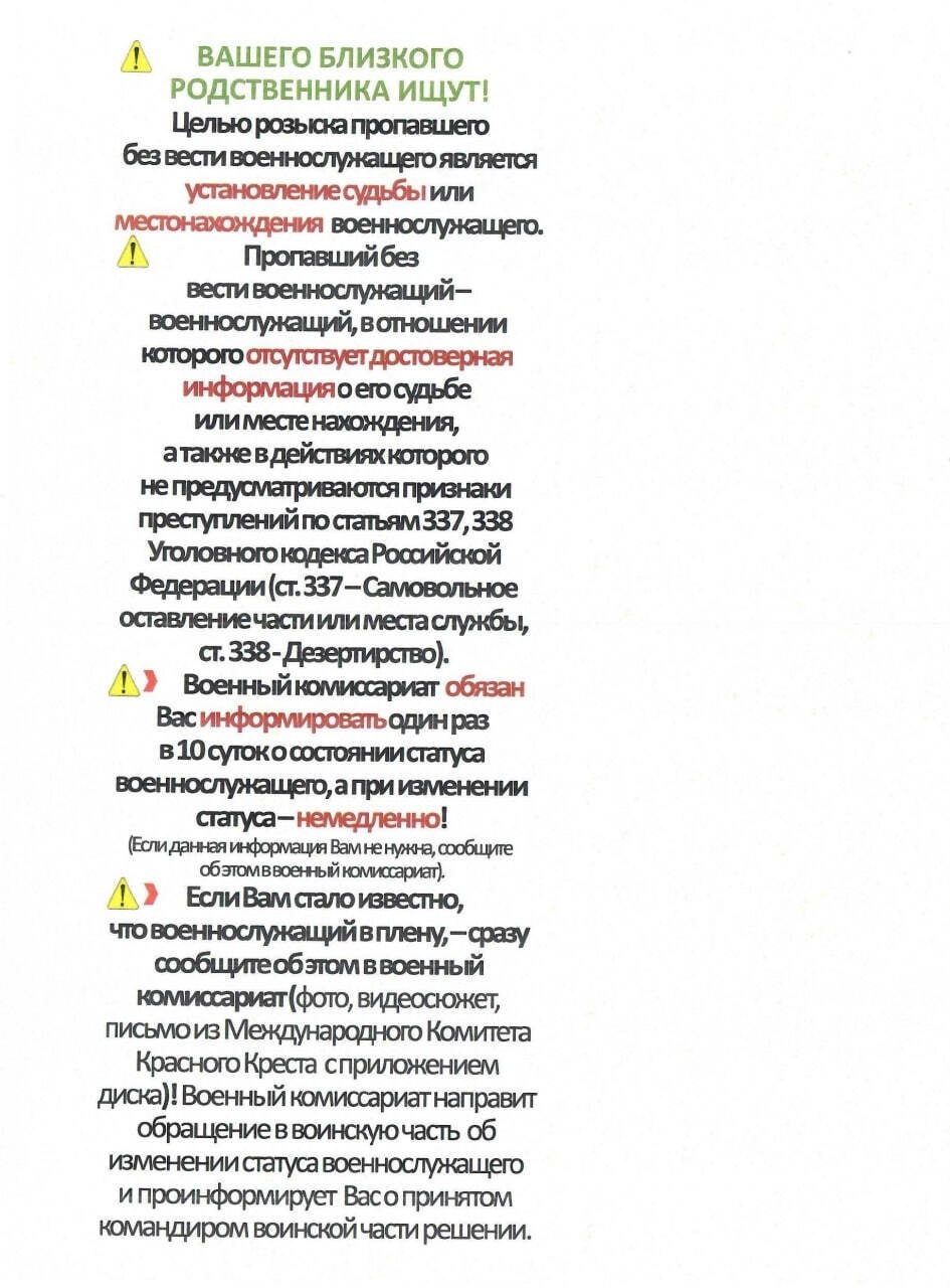 Дорогие красненцы, если ваш близкий, участвующий в СВО, пропал без вести, следуйте этим шагам.