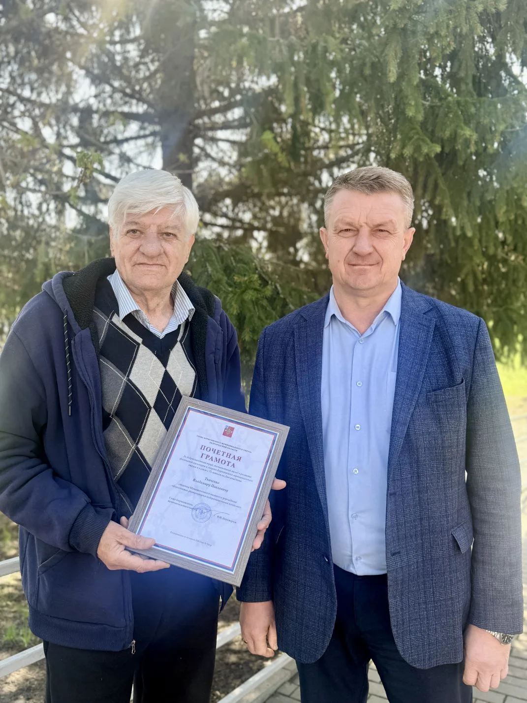 Сегодня я с радостью вручил Владимиру Павловичу Почётную грамоту нашего округа за верность профессии и любовь к спорту. Желаем ему крепкого здоровья, неиссякаемой бодрости духа и долгих лет жизни! Пусть его энергия никогда не иссякает, а встречи с благодарными воспитанниками - на площадке или в тёплой беседе - дарят только положительные эмоции.