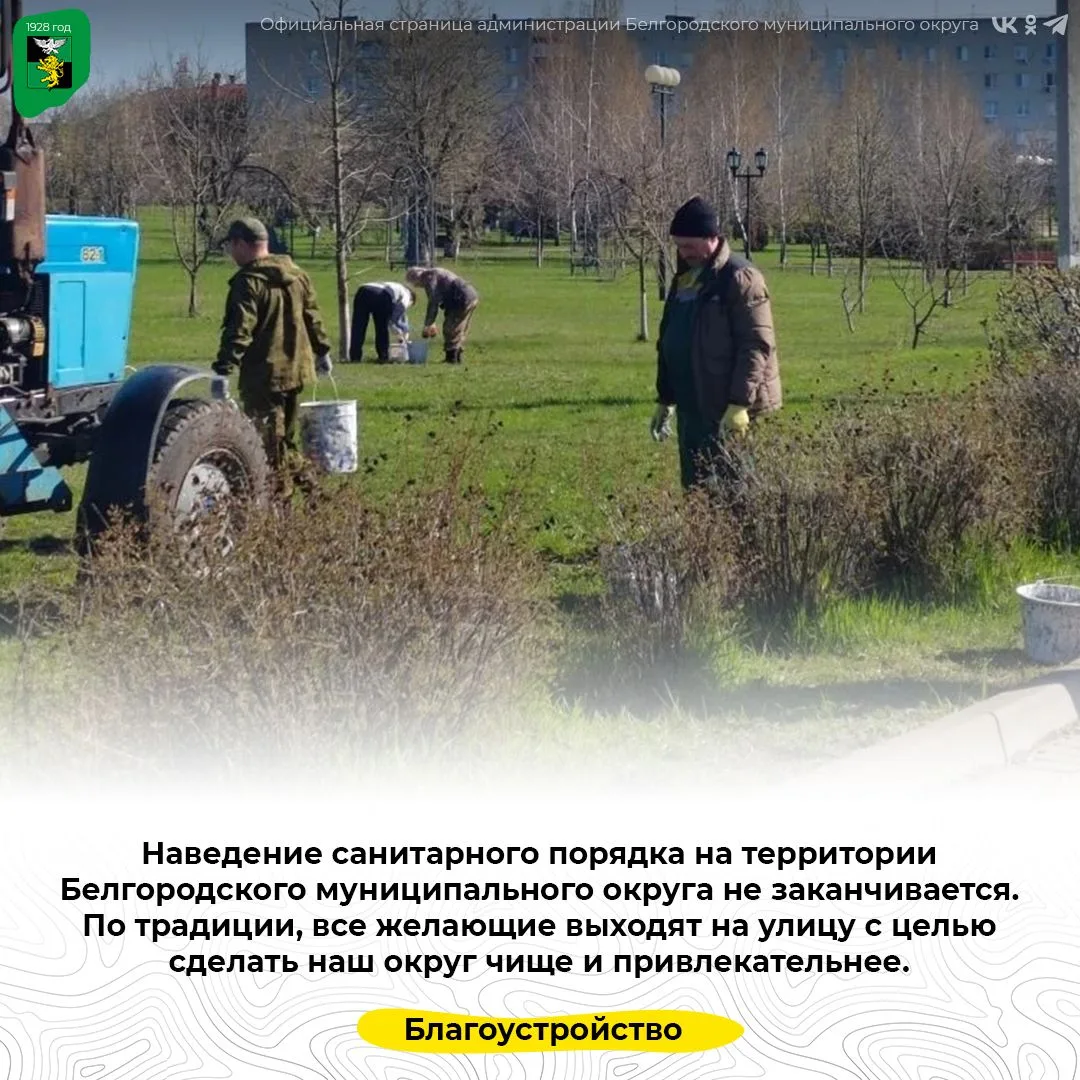 В рамках экологического месячника «Дни служения Белгородской области» проводится уборка общественных территорий. В настоящее время работы сосредоточены на подготовке к предстоящим майским праздникам.