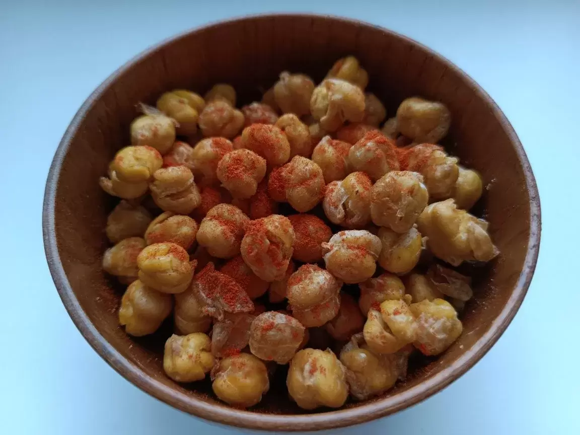 Для этого снэка используют всего несколько ингредиентов: нут, вода, соль и специи. Точные пропорции не важны, ориентируйтесь на свои предпочтения: