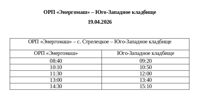К Юго-Западному кладбищу — от разворотной площадки «Энергомаш» по пр. Б. Хмельницкого, ул. Преображенской, ул. Сумской, ул. Королёва (с. Стрелецкое) с остановками на всех действующих остановочных пунктах.