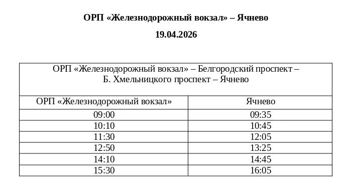 На Ячнево автобусы будут курсировать от разворотной площадки «Железнодорожный вокзал» через Белгородский проспект и пр. Б. Хмельницкого с остановками на всех действующих остановочных пунктах.
